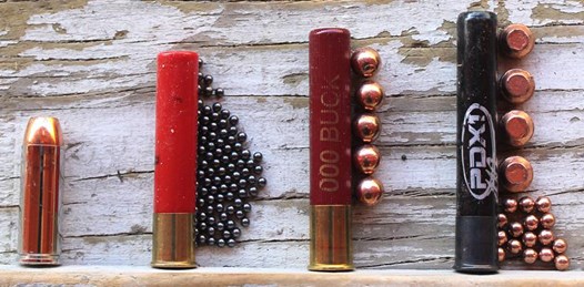 The last .410 shell tested was something of a wild card which I lovingly dubbed 'The Black Mamba' when testing it in the Snake Slayer for the 410Handguns.com website a while back. Officially known as the 3" Winchester PDX1 Defender, this round is one of the heaviest (if not the heaviest) available on the commercial market. It pushes 410 gr. of copper-plated lead (~15/16 oz.) at a listed velocity of 750 fps. The payload consists of four pre-flattened 'defense discs' backed by 16 pieces of BB size shot. When fired from anything smaller than a .410 shotgun or a Magnum Research BFR , these devastating shells produce a monumental level of felt recoil. But I had to know; could the 6" long 8-port barrel tame The Black Mamba? There was only one way to find out.