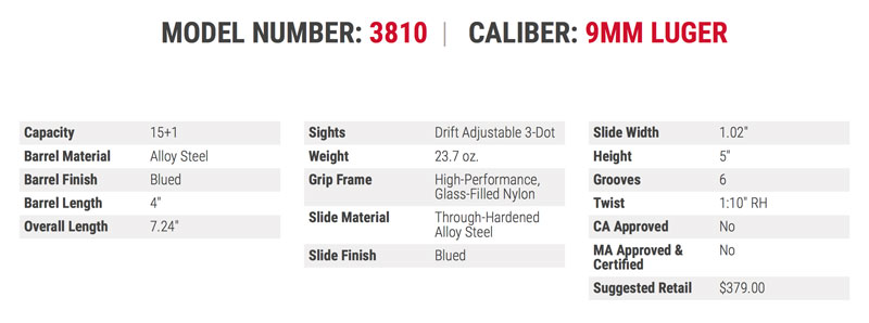 The new Security-9 features a 4" barrel and weighs just 23.7 ozs., empty. It ships with two alloy steel magazines and a cable locking device.