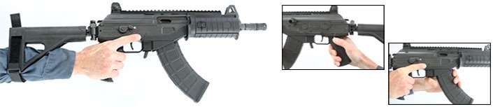 Like the original Galil, the ACE is designed to be bilateral in operation. The paddle-type magazine release can be operated by the thumb of either hand with the 7.62x39 mm firearms. ACEs in 5.56x45 mm NATO and 7.62x51 mm NATO have bilateral button magazine releases. Safety selectors are located on both sides of the firearms, but are in slightly different locations for use by a right-handed shooter’s thumb and forefinger. For those used to a standard AK-type safety, the right hand can still sweep the ACE’s selector on and off. One advantage of the ACE’s safety is that, unlike a traditional AK with a dustcover selector, the ACE can be unloaded with the safety on.