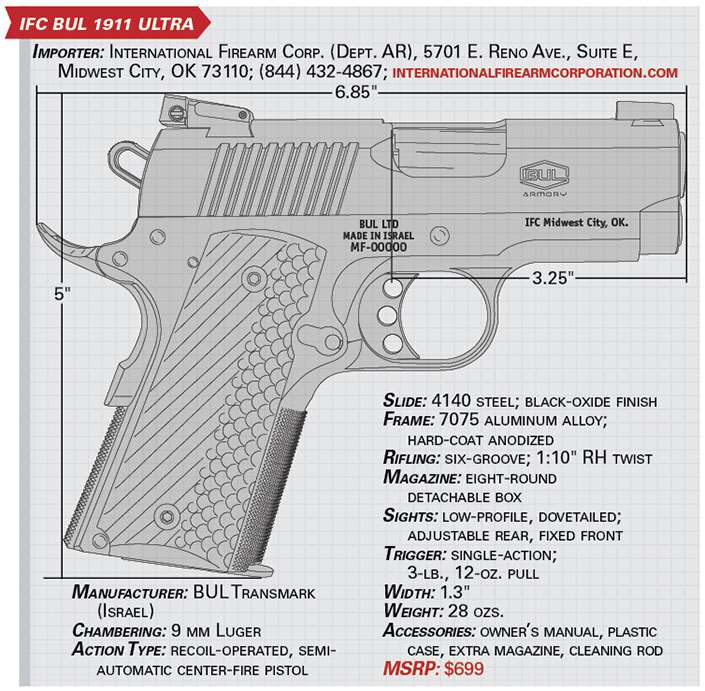 We were impressed with the IFC BUL Ultra. It proved to be 100 percent reliable during our testing and displayed all of the accuracy needed for use as a concealed carry handgun. The pistol possesses exemplary fit and finish for a gun in this price range, and offers shooters an economical, compact solution with many custom features.