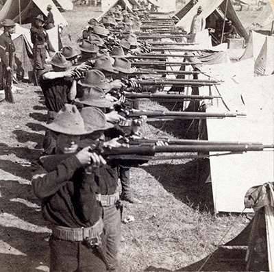 1st Illinois Volunteer infantry with Trapdoor Springfield rifles and bayonets, Spanish-American War. Courtesy of Tom Laemlein.