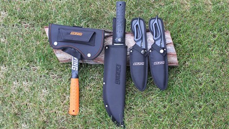 I grew up to the sound of my father's Estwing framing hammer pounding out projects around the house. With its elegant, one-piece American-steel construction and synthetic grip, it's still in his tool box all these years later, though many other implements have come and gone. What I didn't know until recently is that Estwing offers a series of useful camp tools, including the Hunter's Ax, Machete and fixed-blade knives shown here. All of these tools ship with protective nylon sheaths or blade covers.