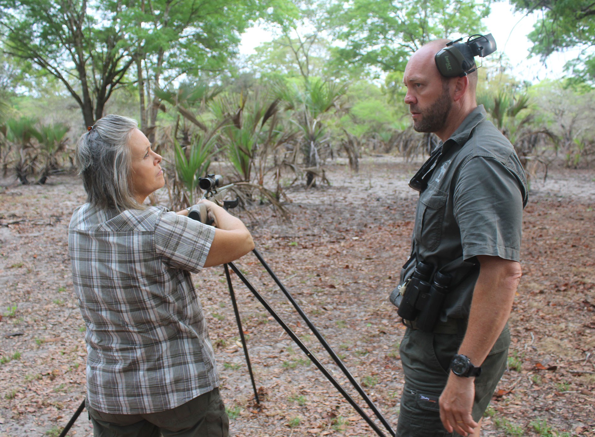 Mozambique PH Ben Rautenbach demonstrates the 4StableSticks system to client Melissa Belcher. Although incredibly stable, all unfamiliar shooting aids require practice.