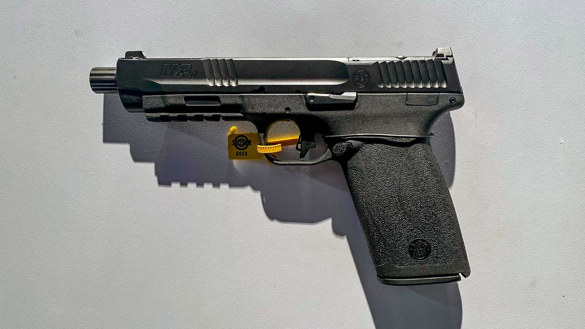 One of the surprises from SHOT '23 was Smith & Wesson's introduction of its 5.7x28 mm FN pistol, which provides 22+1 rounds on board in an easy-to-shoot platform. S&W is squeezing out every ounce of capability from the 5.7x28 mm round, thanks to the company's rotating Tempo Barrel System, which makes the M&P5.7 a gas-operated, locked-breech handgun. Two models are available, one with a thumb safety and one without. The pistol also feature ambidextrous controls in the form of a mirrored slide stop and a reversible magazine release. The 5.7 mm handgun is also cut to accept a micro red-dot optic and also features a flat-face trigger, Picatinny accessory rail, threaded barrel and three-dot sights. Suggested retail pricing on the gun is $699.