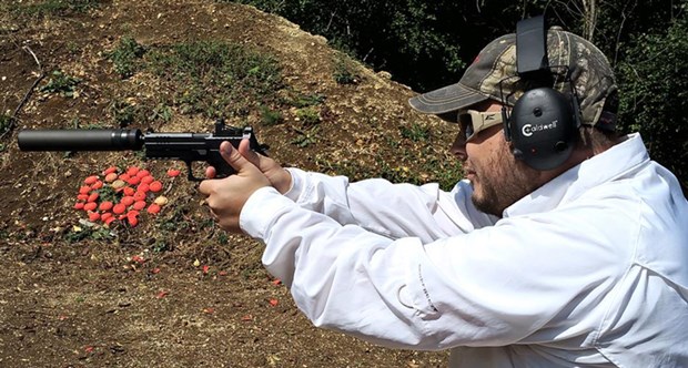 Thousands of rounds were fired through several pistols during our time at a beautiful mountainside shooting range. Thanks to puddles left by a rain storm the night before the bullets fragmenting against the steel targets made a spectacular splash.