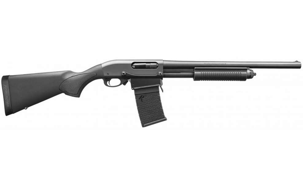 Remington introduced its pump-action Model 870 in 1950, and with more than 11 million made, it is hands-down the most popular shotgun of all time. The Model 870 DM does something other 870s don’t; it feeds from a detachable box magazine. Gone is the underbarrel tubular magazine (it still supports the fore-end, though), a new assembly added to the underside’s loading port allows the gun to accept either three- or six-round polymer detachable magazines (thus, the “DM”). The gun comes with an 18 1/2" cylinder-bore barrel topped with a brass bead. You can get it in basic black, with a Magpul stock and fore-end, in camouflage with thumbhole stock, in TAC-14 guise with a Shockwave bird’s head grip and Magpul fore-end, or, my favorite, with an old-school hardwood stock and corncob fore-end. remington.com