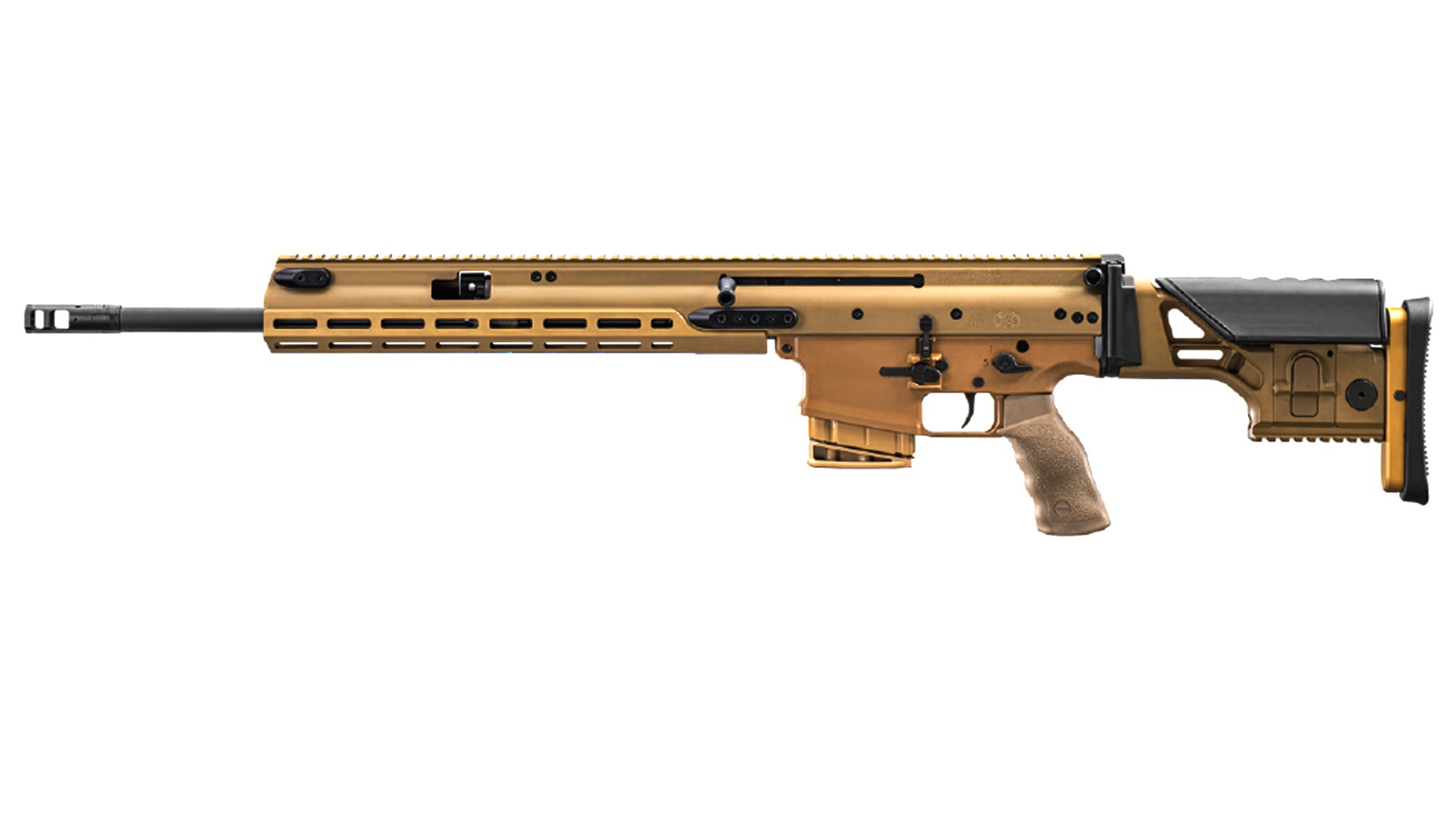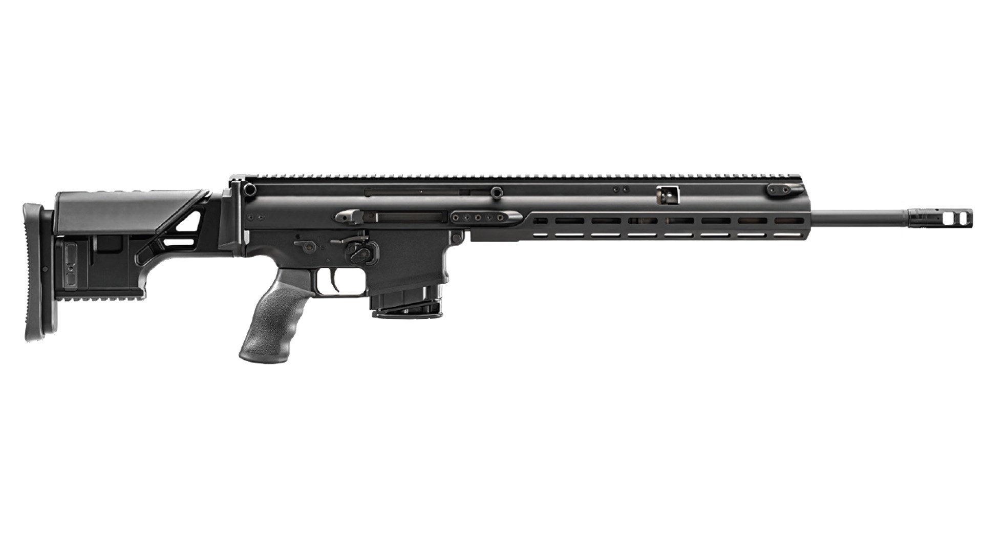 The SCAR returns in the three rifle formats that FN previously offered with each having three finish options — black, gray and flat dark-earth (FDE). The 16S is chambered in 5.56 NATO with a 16.25-inch barrel, weighs 8.7 pounds, and has an MSRP of $3,799.