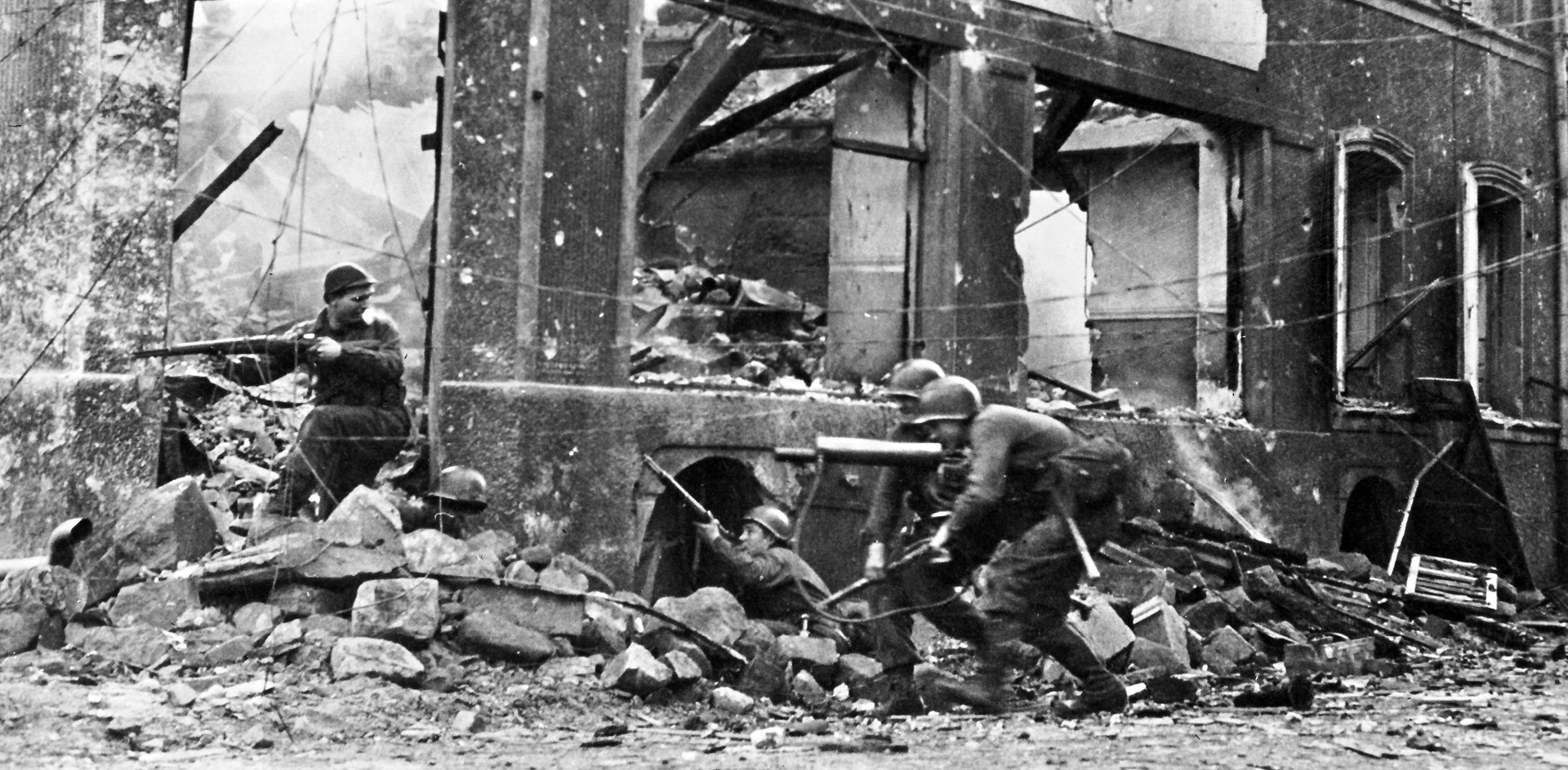 "Heavy machine guns are used to spray taller trees likely to contain enemy snipers."--Platoon Leader, 83rd Div.