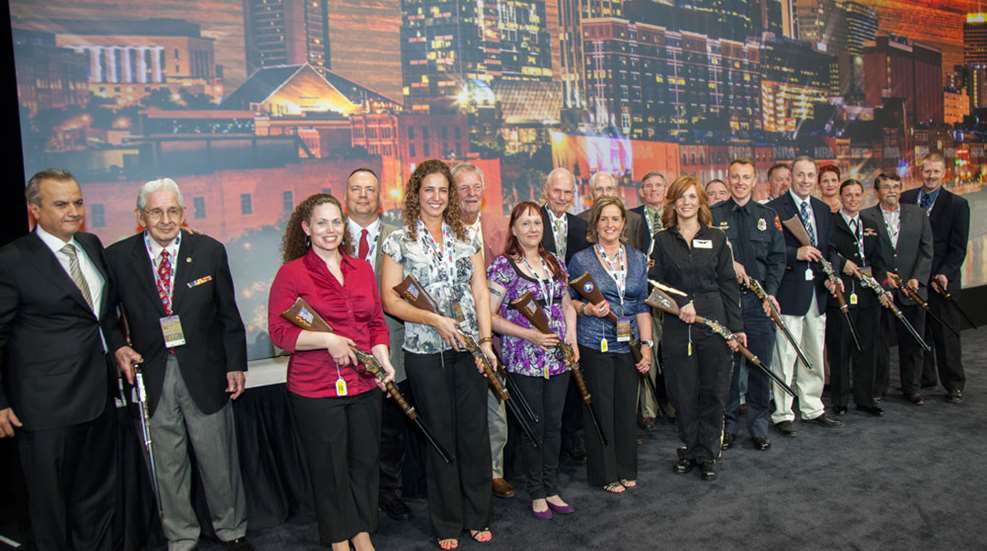 Inspiring a standing ovation from the thousands in attendance at the banquet, which kicked off the 2015 NRA Annual Meetings & Exhibits, Harrell was in the company of other local heroes, 19 fellow Tennesseans who were also recognized and presented Tribute rifles that reflect their line of duty.