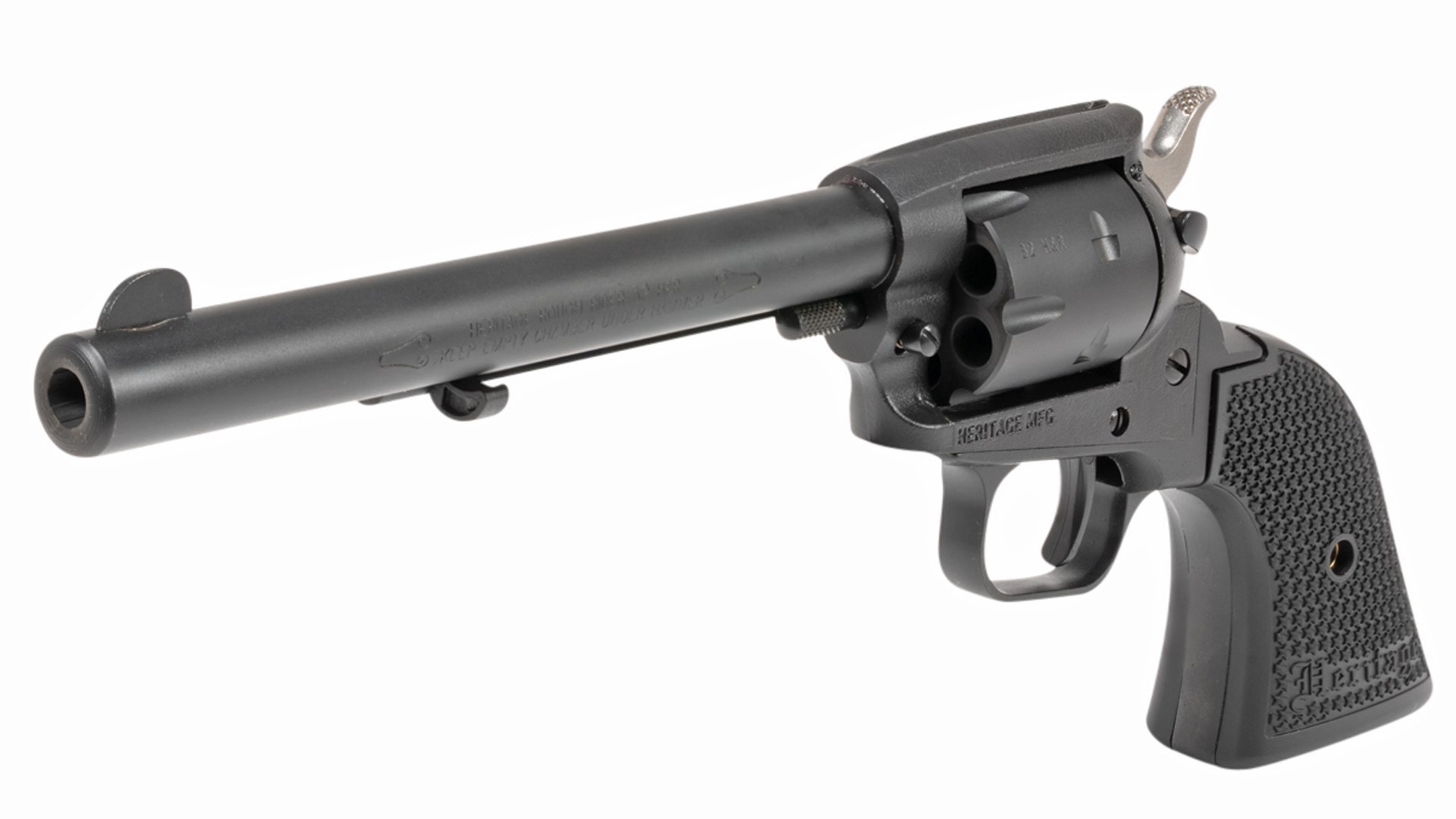 The remainder of its features are classic Rough Rider. It is a single-action, solid-frame revolver with a manual ejector mounted to the barrel. Sights are the traditional fixed front and rear, and the revolver uses Heritage’s manual thumb safety.