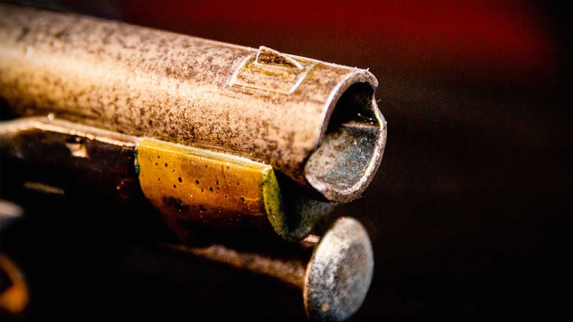 "The rifle itself was interesting in that, rather than using just a plain round ball and a patch, it had two deep grooves down the barrel, and the ball itself had a ring cast around the bullet that mechanically fit into these grooves," American Rifleman Field Editor Garry James said. "This was not a new device, however, it was the first time it was really used to any great degree in a military arm."