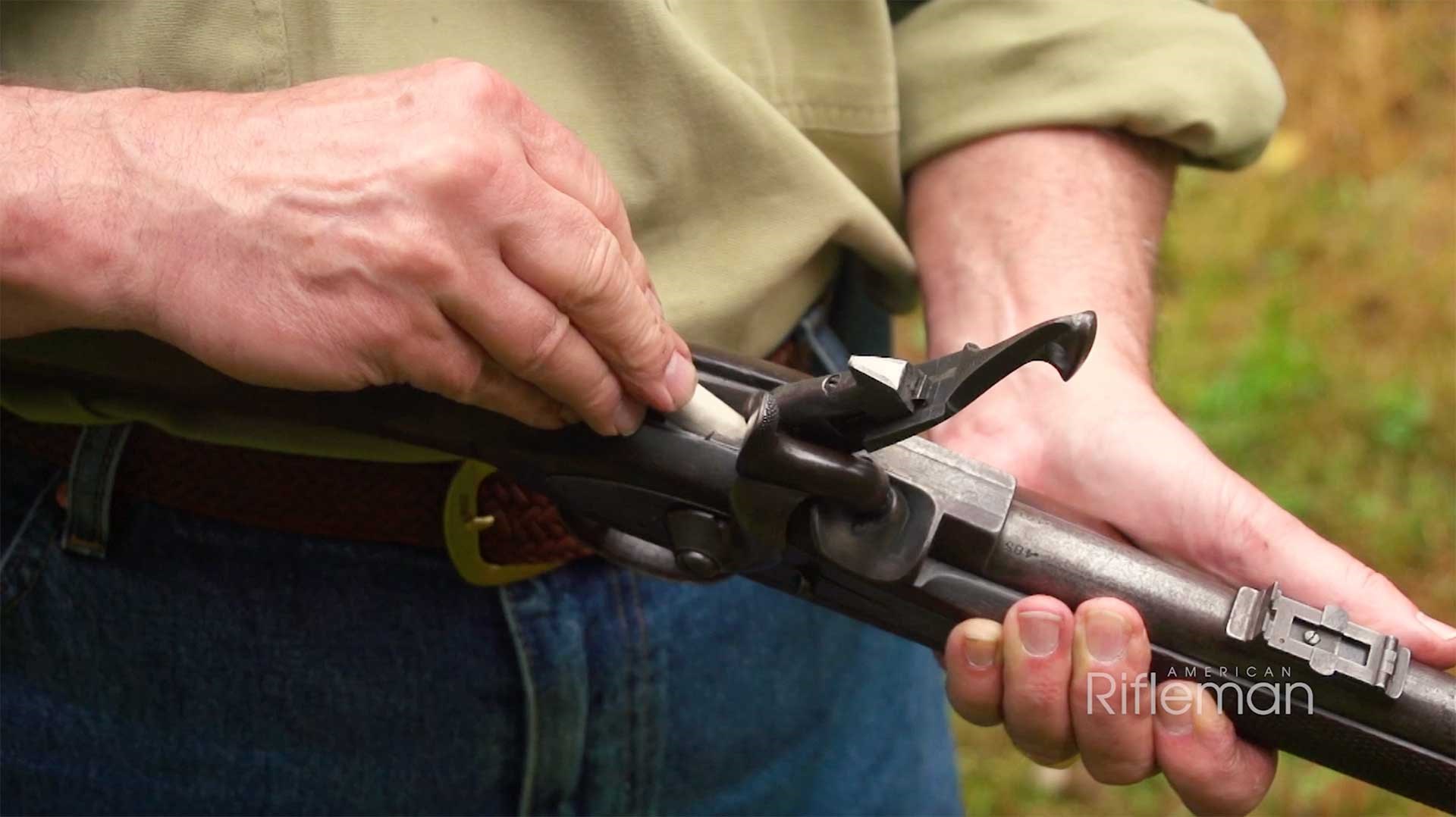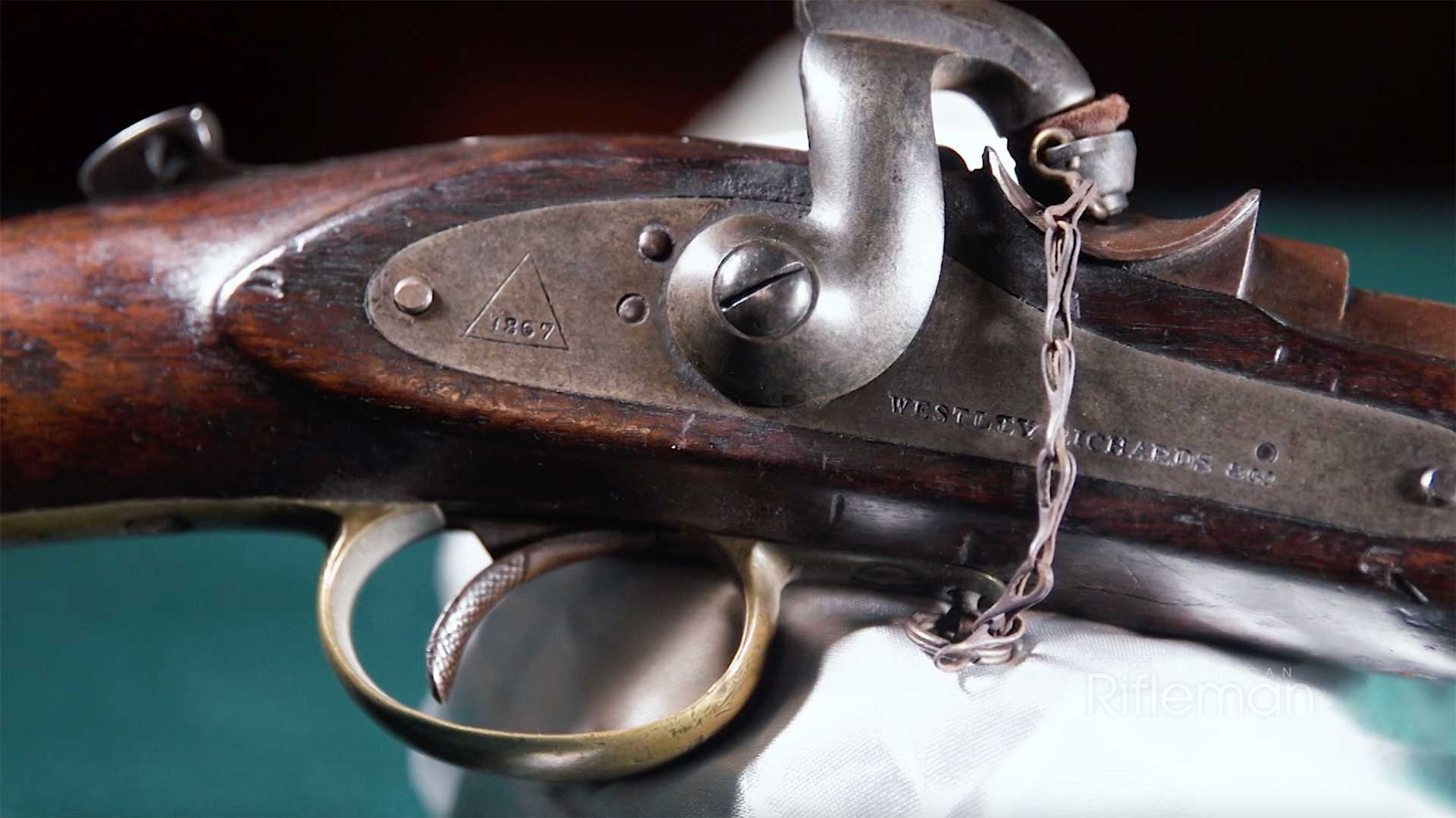 "The Westley Richards, unlike a lot of capping breechloaders at the time, made use of a combustible cartridge rather than a metallic cartridge," American Rifleman Executive Editor Evan Brune said. "So this was a paper-wrapped projectile with a felt wad at the base. Now the reason for the felt wad was they needed some way to seal the breech against excess gas leakage, and that felt was intended to provide that."