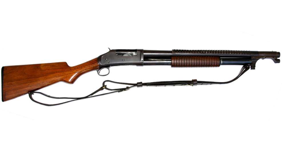 An atypical hero emerged, the militarized Winchester Model 97 Riot Gun, a 20"-barrel, 12-ga., cylinder-bore version of John Browning’s Model 1897 exposed-hammer, pump-action shotgun that held five rounds in its under-barrel, tubular magazine.