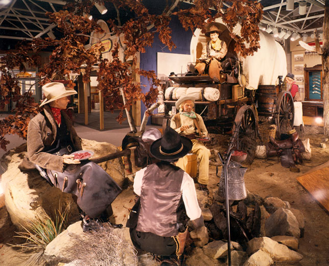 A montage of guns, catalogs and events from John Bianchi’s life. At top, John’s childhood Winchester Model 62 takedown .22 pump rifle; below that, a Bianchi catalog from 1965 and an original order blank. To the left of the rifle stock is John’s Special Investigator’s badge and I.D. card; below, the signature gun belt, holster, and Colt Single Action worn by John in many of his ads and personal appearances; a rare early Safari Ltd. catalog from 1965-66 (John was co-founder); a custom holster John made for his own S&W Bodyguard revolver; at lower left an original 1963 Protector Brand Bianchi sales catalog; two photos of John on the Monrovia police department in 1963; a photo from his first Army assignment in Alaska in 1956; the original left hand Speed Scabbard that he made for his 1911 .45 Government Model in 1959, lost and found again in a pawn shop 30 years later. At far lower right, a photo of the first Bianchi manufacturing plant in 1967 along with John’s portrait; and far right, a 1968 Bianchi catalog and photo of John with his original Monrovia police department duty holster in a shadow box.