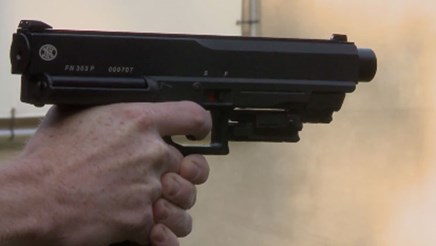 While there, FN’s Shane Healey ran me through FN’s Less Lethal offerings for its military and law enforcement customers, in particular the 15-shot semi-automatic FN 303 Less Lethal Launcher. Sometimes, a firearm shooting bullets is not the right tool for the job. Essentially, the compressed-air-powered FN 303 launches a fin-stabilized 18 mm projectile that weighs up to 8.5 grams. They are designed, in Shane’s words, “to inflict pain.” And as you can see from the accompanying video—this week’s Rifleman TV “Web Exclusive”—it is very accurate, with hits coming easily from 25 to 50 meters from both the handgun version (the FN 303P run off a C02 cylinder) and the shoulder-stocked 303. They can fire a host of different rounds, ranging from simple kinetic projectiles, to marking rounds to those with irritant agents. Notice the use of the term “less” lethal”—not “non lethal.” These are not toys, and the launchers and their projectiles are restricted to law enforcement and military only.