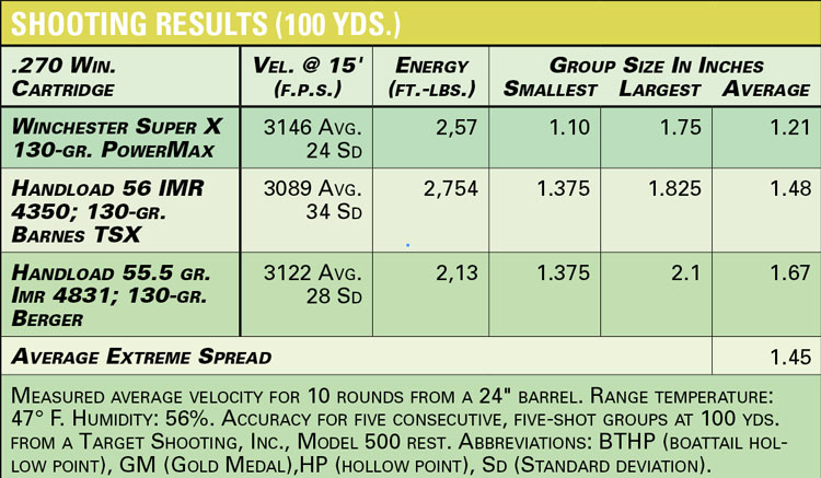 Caliber: .270 Win. (tested); .280 AI, .30-06
