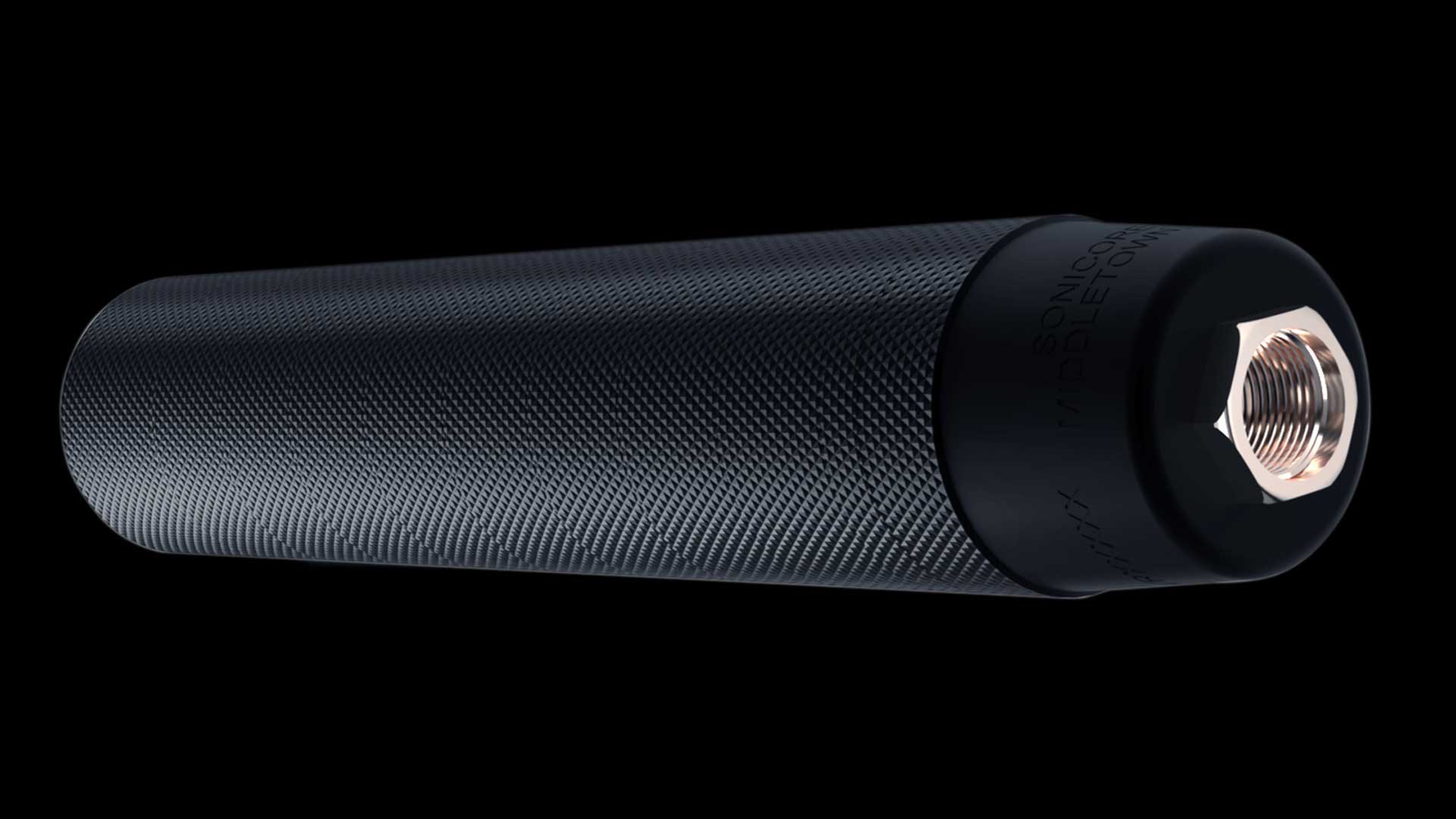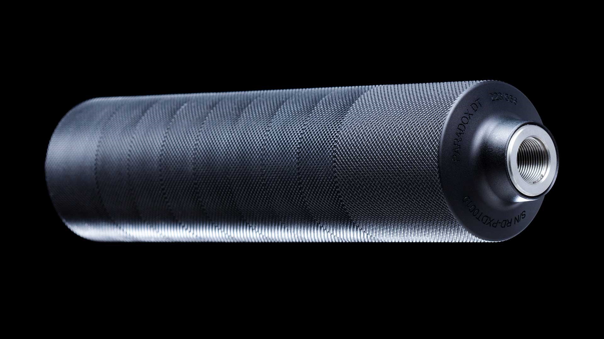 The Paradox DT is a direct-thread suppressor, with a lightweight and modular design machined from 6026-T9 aluminum and 303 stainless steel, finished with an all-black, hardcoat-anodized treatment. Like the Rekkr, the Paradox's modular design allows the user to shorten the can when maneuverability is more essential, and the Paradox’s lightweight design achieved through the use of aluminum baffle modules combined with 303 stainless steel baffle inserts, like the Rekkr suppressors, but the thinner walls of the Paradox cut down on weight, and the Paradox weighs in at just 13 ounces in its full configuration. Sonicore markets the Paradox as "a perfect, lightweight and effective option for hunters."