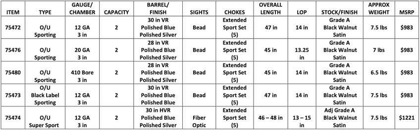 The Gold Reserve series over over-under shotguns are well-appointed and feature-rich break-action shotguns that include three sub-models at time of unveiling: Sporting, Black Label Sporting (blued receiver) and Super Sport. All three models feature 3” chambers, regardless of gauge; .410 Bore, 20- and 12-ga. will be offered.