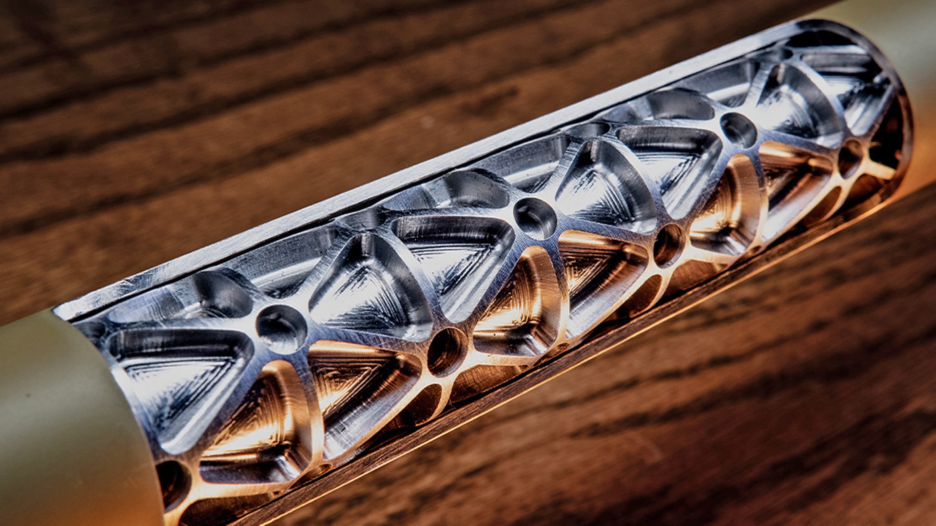 The Bridger rifle, without optics, weighs in at 7.1 lbs. This weight savings comes in part from the rifle’s 22” LRA Precision Ti-Strike titanium hybrid barrel. This barrel uses a stainless-steel core, whose outside surface is machined in a unique pattern inspired by the Fibonacci Sequence, placed within a titanium sheath that is chemically welded to the core. According to Watchtower, the weight of the hybrid barrel is just under a carbon-fiber barrel of the same dimensions, but the titanium hybrid barrel disperses heat better. The barrel’s bore has 5R rifling with a 1:8 RH twist and its muzzle is threaded 5/8x24 TPI, and it comes with a titanium muzzle brake installed.