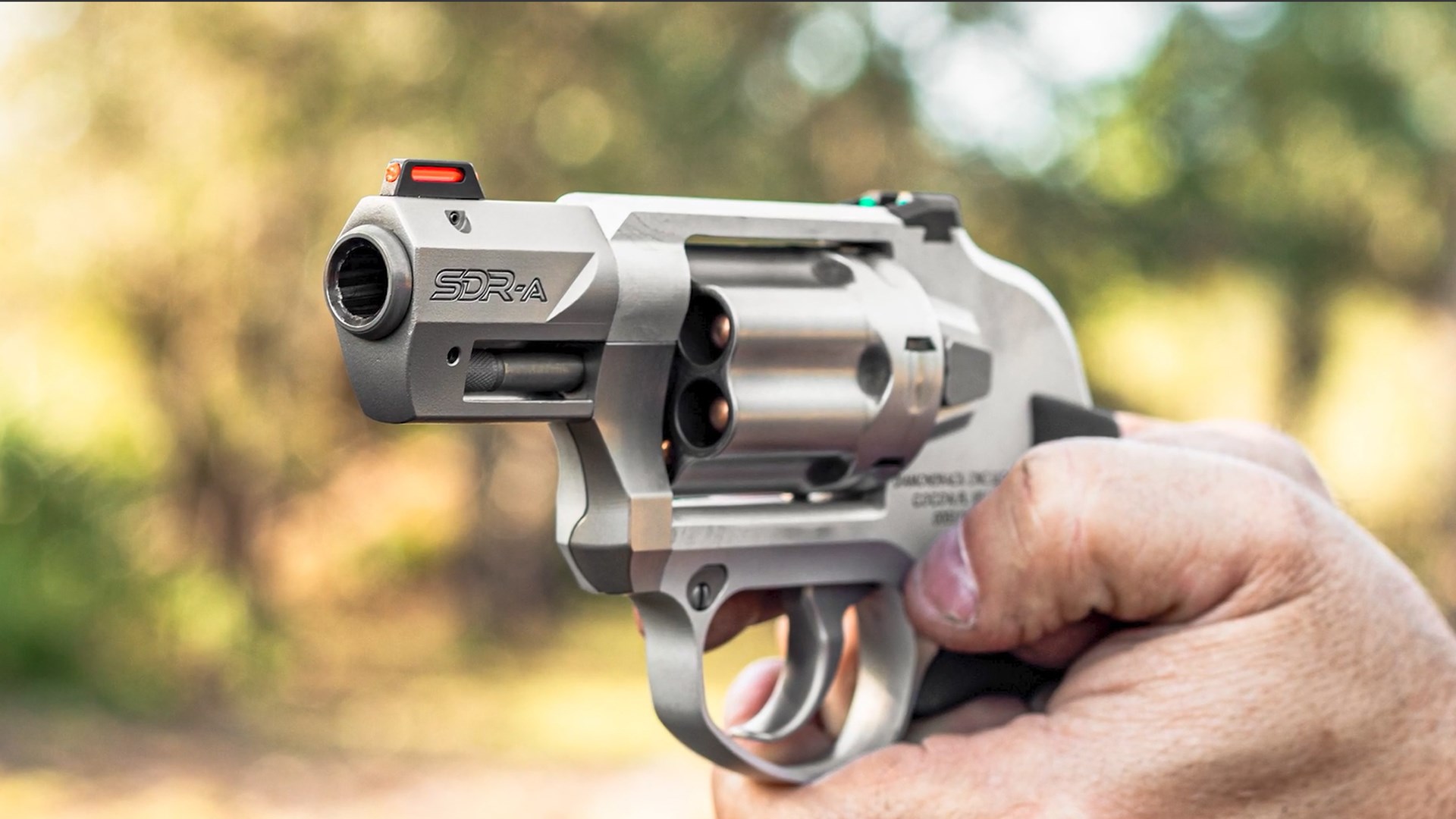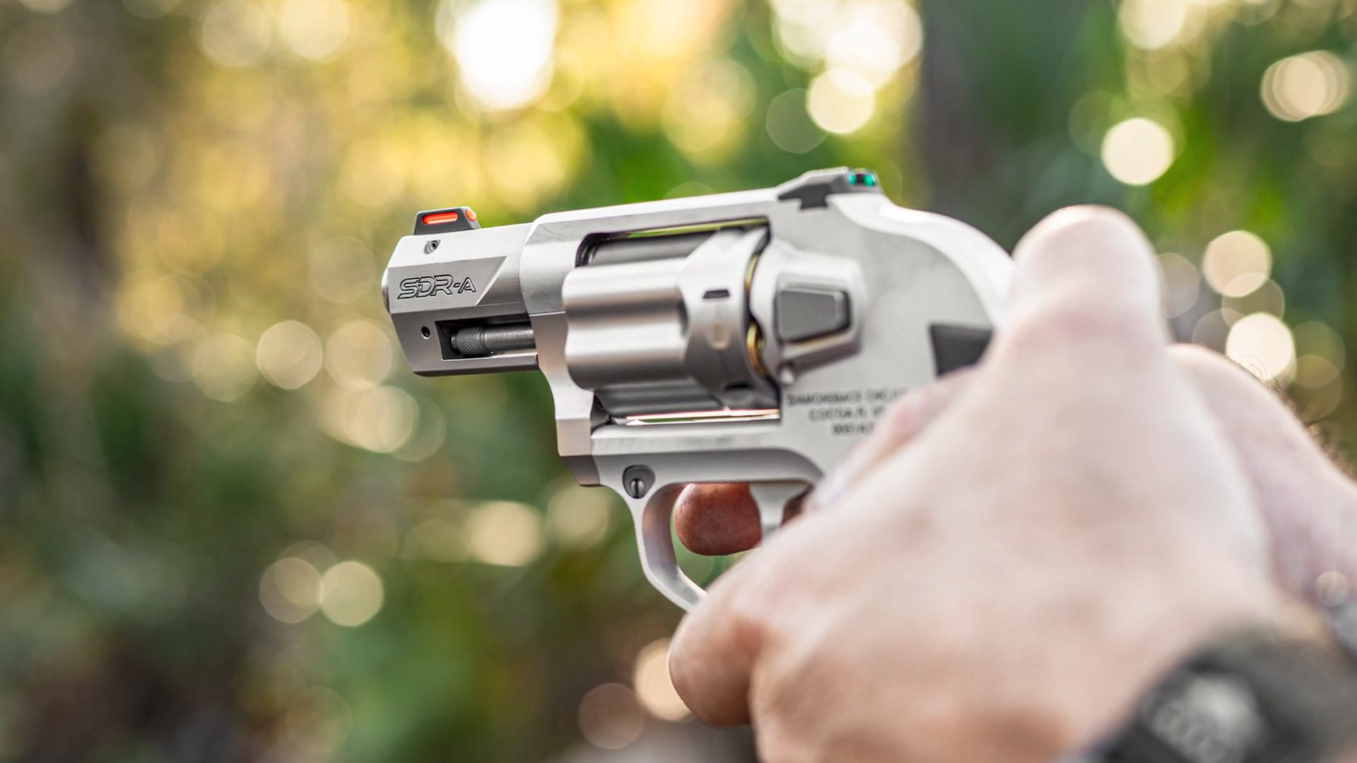 The remainder of the SDR-A’s specs remain the same, from its six-round capacity to its fully-captured cylinder and crank link assembly that can be removed with the push of a button. Its 2-inch barrel has a precision target crown and sights consist of a pinned front post with fiber-optic insert and a low-profile rear notch with fiber-optic inserts, fitted into a dovetail. The black rubber grips are made by Hogue, and the SDR-A is J-Frame grip compatible. K6 speedloaders can be used with its six-shot cylinder, and the SDR-A is compatible with SDR holsters already in the market.