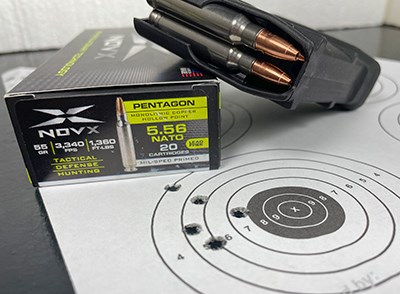 Outside of the outlier mentioned above, in the Pentagon series, NovX currently loads an 80-grain .380 ACP, the same projectile in 9 mm Luger (not yet listed on the website), a 55-grain 5.56 NATO and 125-grain .300 Blackout.