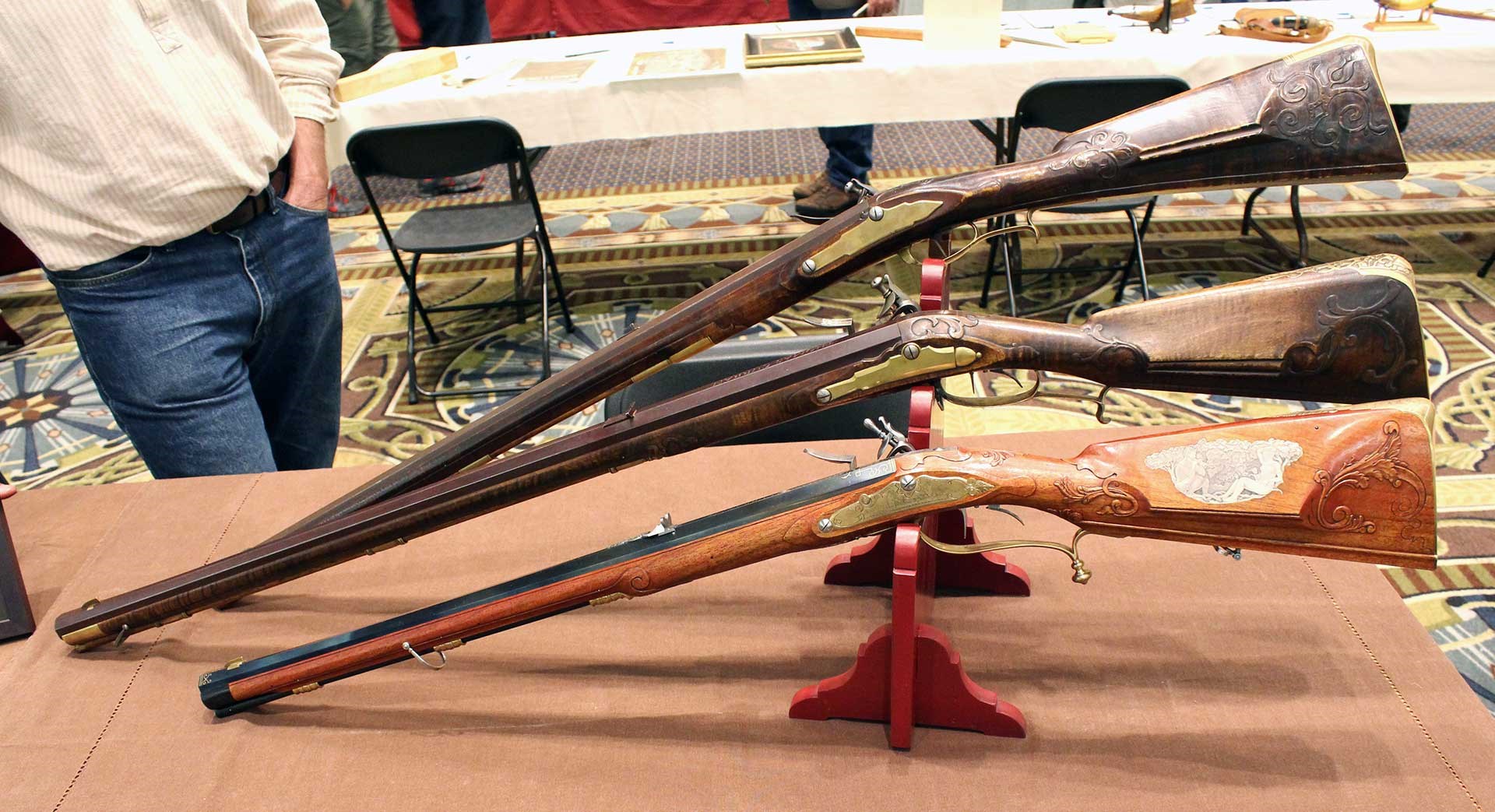 Many CLA members are respected masters in their fields, knowledgeable and highly skilled in the decorative forms and techniques of the periods in which they work. At this show, you’ll find expertly executed Golden Age Kentucky longrifles and other arms made at the masterpiece level. You’ll find humble, iron hardware, unadorned, “po' boy” rifles, too, and everything in between. In fact, there are more American flintlocks here than you have ever seen in one place. Virtually every type is represented; slender longrifles, short Jagers, fowlers longer than a man is tall, and pistols of every size and style. The quality of workmanship is every bit as good, if not better, than those made by the best craftsman when American was the New World. This show is a vehicle for more than 300 contemporary artisans to show and sell their work.
