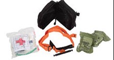 This includes a SOFTT tourniquet, a nasal pharyngeal for establishing an airway, and Quick Clot Combat Gauze for treating a gunshot wound. I generally just use Gorilla tape for small bandages.
