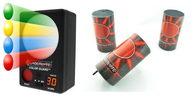 The Color Guard Trainer Target (TLB-CG, $153.95), below left, is designed to keep shooters on their toes by testing their situational awareness in low light situations. This target presents “friendly” and “enemy” targets by randomly alternating between four illuminated colors. Each color flashes quickly and requires the user to choose to shoot or not shoot. Shooting the target when it flashes blue or green scores a point on the integrated LED scoreboard. Shooting red or yellow subtracts a point.