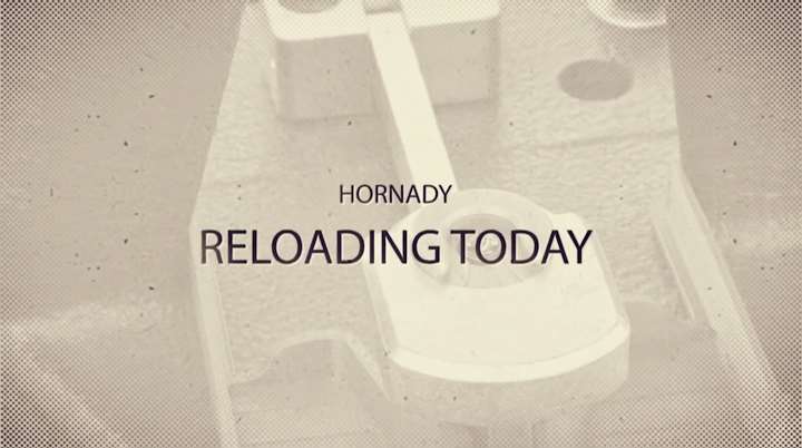 Text on faded reloading press image stating "Hornady: Reloading Today"
