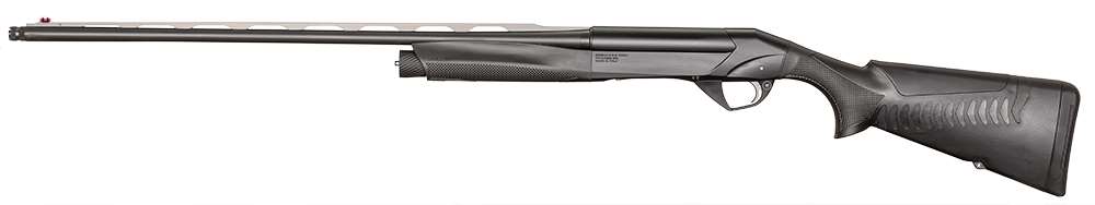 The 28-ga. SBE3 wears a cryogenically treated barrel, available in either 26" (tested) or 28" lengths. The stress-relieved, hammer-forged Crio System barrels reportedly deliver denser patterns, with 13.2 percent more pellets on target, and are easier to clean; this process is employed on the screw-in choke tubes as well. The five included Crio tubes are cylinder, improved modified and full (flush-fitting) and improved cylinder and modified (extended). Topping the steel barrel is a 7 mm-wide, carbon-fiber rib ending with a red, fiber-optic pipette.