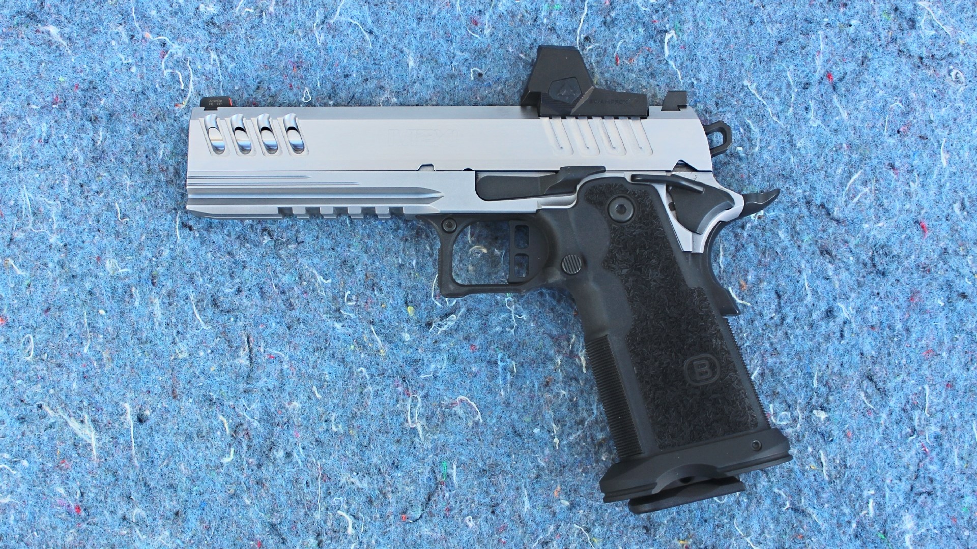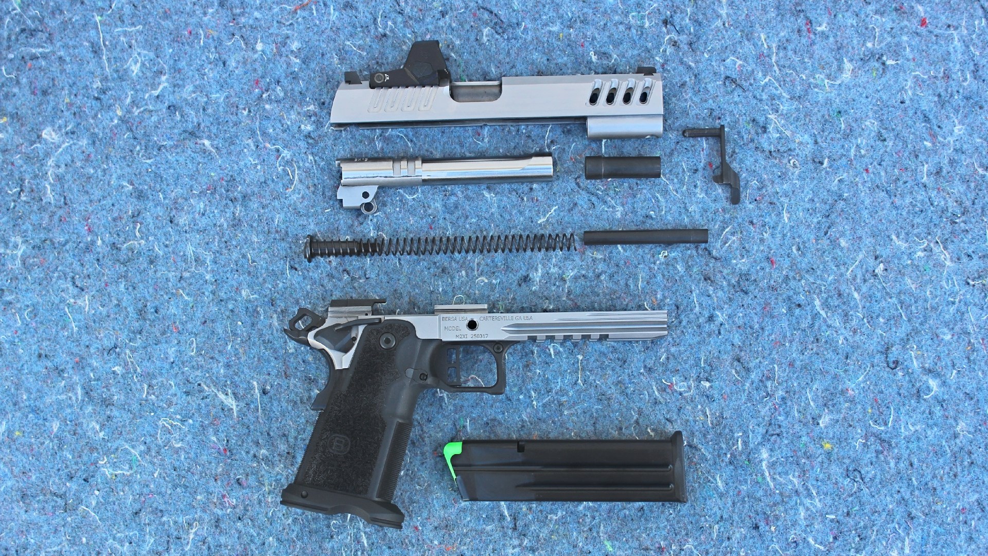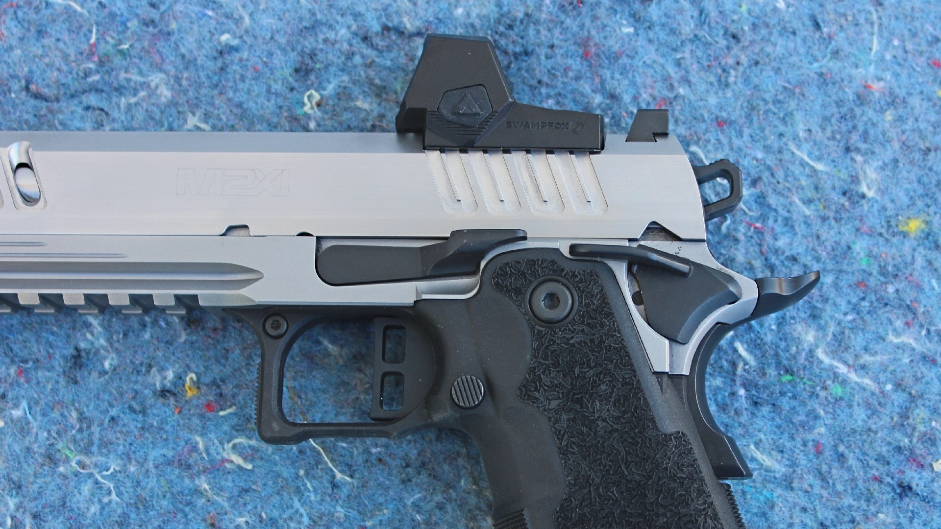 The competition-style M2XI chambered in 9 mm draws its design influences from the 2011 pistol developed by gunsmith Virgil Tripp and engineer Sandy Strayer and patented in 1994. This means it’s a recoil-operated semi-automatic pistol with three major components. They include a 1911-inspired slide assembly, a metallic"'upper" that houses the 1911 style controls and a textured polymer grip module sized for double-stack magazines.