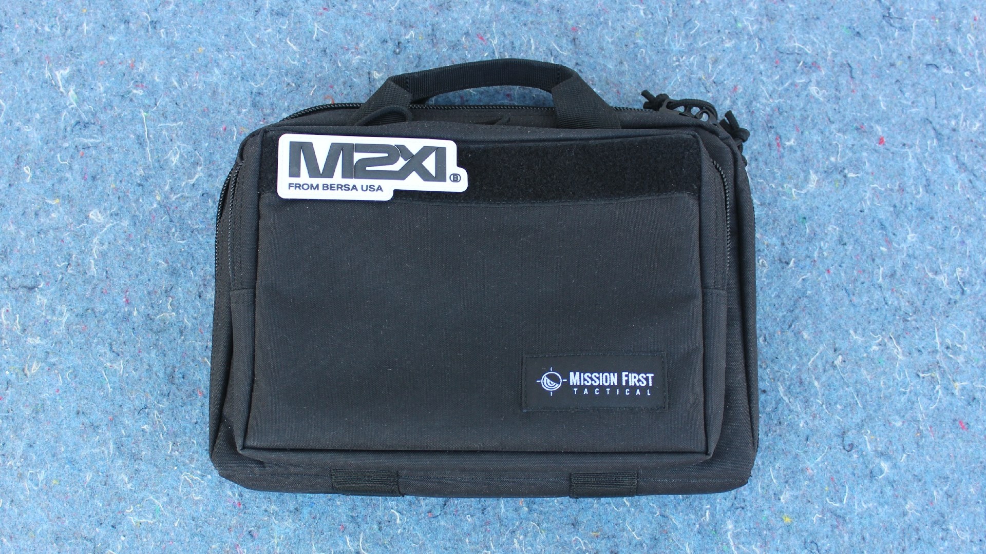 Instead of the typical plastic storage case, Bersa opted to ship this gun in one of Mission First Tactical's (MFT) top-notch zippered Two Pistol Carrier (TPC) range bags. Made from 600 Denier ballistic nylon, the outer pocket has elastic loops for up to five magazines. The interior is partitioned into three pockets by two padded dividers. It's a handy, well-made case that can be put to work managing gear at the range as well as for pistol transport.