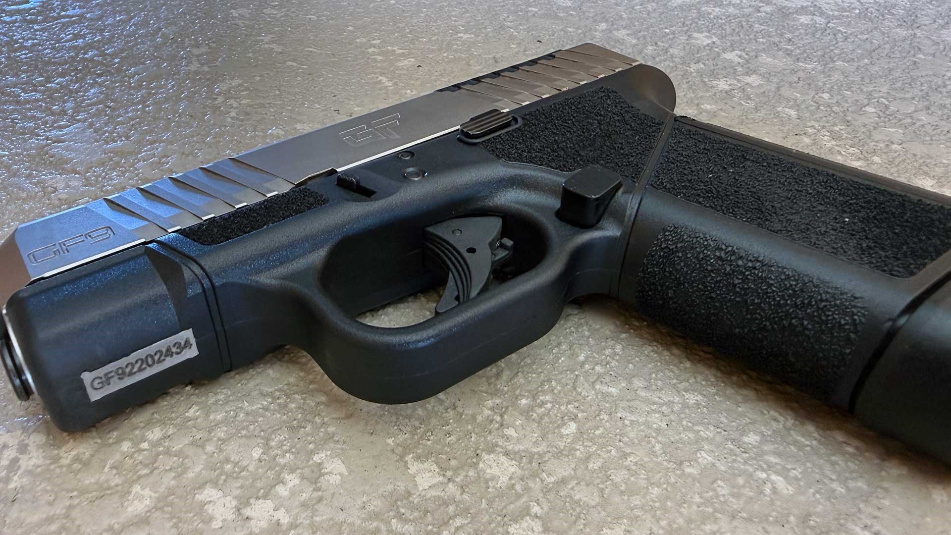 Let’s talk about the trigger. On the website, the “Rapture” is pictured and listed as having an ergonomic “flat-faced” trigger shoe. While that would be a very welcome feature, my pistol came with a classic curved Glock trigger with those strange ridges that I’ve always found to be uncomfortable. When I reached out to ask about that discrepancy, I was informed the GF9 would no longer come equipped with the flat trigger. So, if you buy this pistol with hopes of a flat trigger, be aware that you will likely not receive one. Luckily though, the GF9 is compatible with most GEN3 G26 parts, so a trigger can be dropped right in.