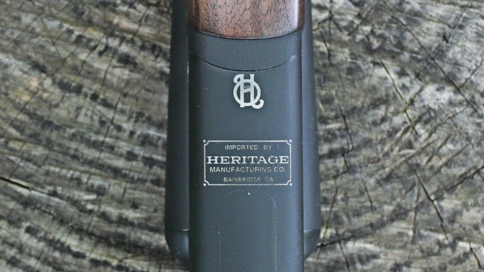 Although I prefer polymer-stocked long guns for certain endeavors, there's nothing else out there with the satisfying warmth and smooth feel of a properly finished walnut shoulder stock like this one. The heft of the hardwood contributes to this gun's well balanced weight of 6 lbs., 5 ozs. The stock is capped off with a black polymer plate and a black rubber recoil pad. The Heritage circled "H" logo is laser engraved into both sides of the shoulder stock just in front of the butt pad.