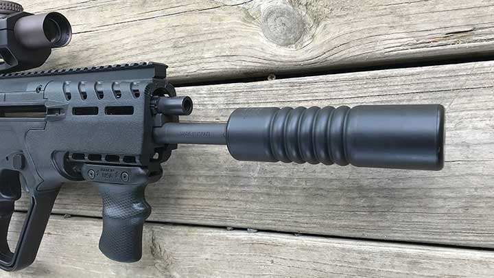 Suppressor use has never been as popular for military, law enforcement and civilian use, though the benefits of suppressor use are hard to argue against. The CZ USA Ti Reflex rifle suppressor was direct threaded to the Tavor 7. The Ti Reflex’s 3" reflex chamber was removed due to Tavor 7’s adjustable gas lever interfering with installation. The compact CZ Ti Reflex suppressor performed well with the Tavor 7. The minimal addition to overall length means you can consider leaving the CZ Ti Reflex suppressor attached for multiple scenarios.