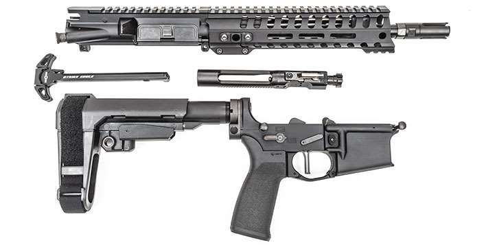 An anti-tilt buffer tube cradles the rear of the bolt carrier group when the firearm is in battery. This design prevents premature wear from buffer tilt, and the buffer detent pin actually keeps the tube from unscrewing. In the case of the Minuteman pistol, an SB Tactical SBA3 arm brace is attached to the buffer tube. It offers the shooter five length-of-pull options and allows for a little more than 2.5" of adjustability.