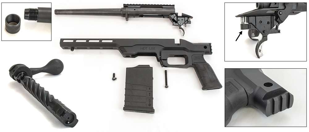 From the factory, our test sample arrived set for an average trigger-pull weight of 3 lbs., 6 ozs. By removing the chassis, we were able to access the adjustment screw and found that the trigger on the 110 PCS could be set to break anywhere between 3 lbs., 2 ozs., and 9 lbs., 5 ozs.—one of the largest ranges we’ve ever encountered.