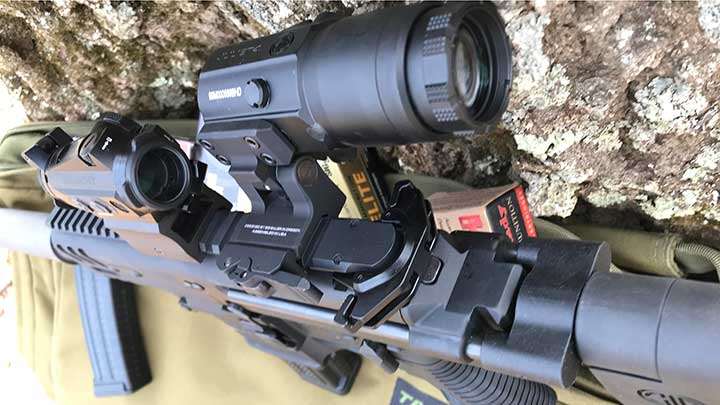 Magazine changes with the MPX Copperhead proved a smooth affair indicative of AR-like ergonomics. The closed-bolt MPX does have a bolt-hold-open device, which is different than most pistol-caliber designs, aiding in swifter reloading. The balance of the MPX Copperhead combined with firing 9 mm in a 4.5-lbs. weapon minimizes any recoil or muzzle climb.