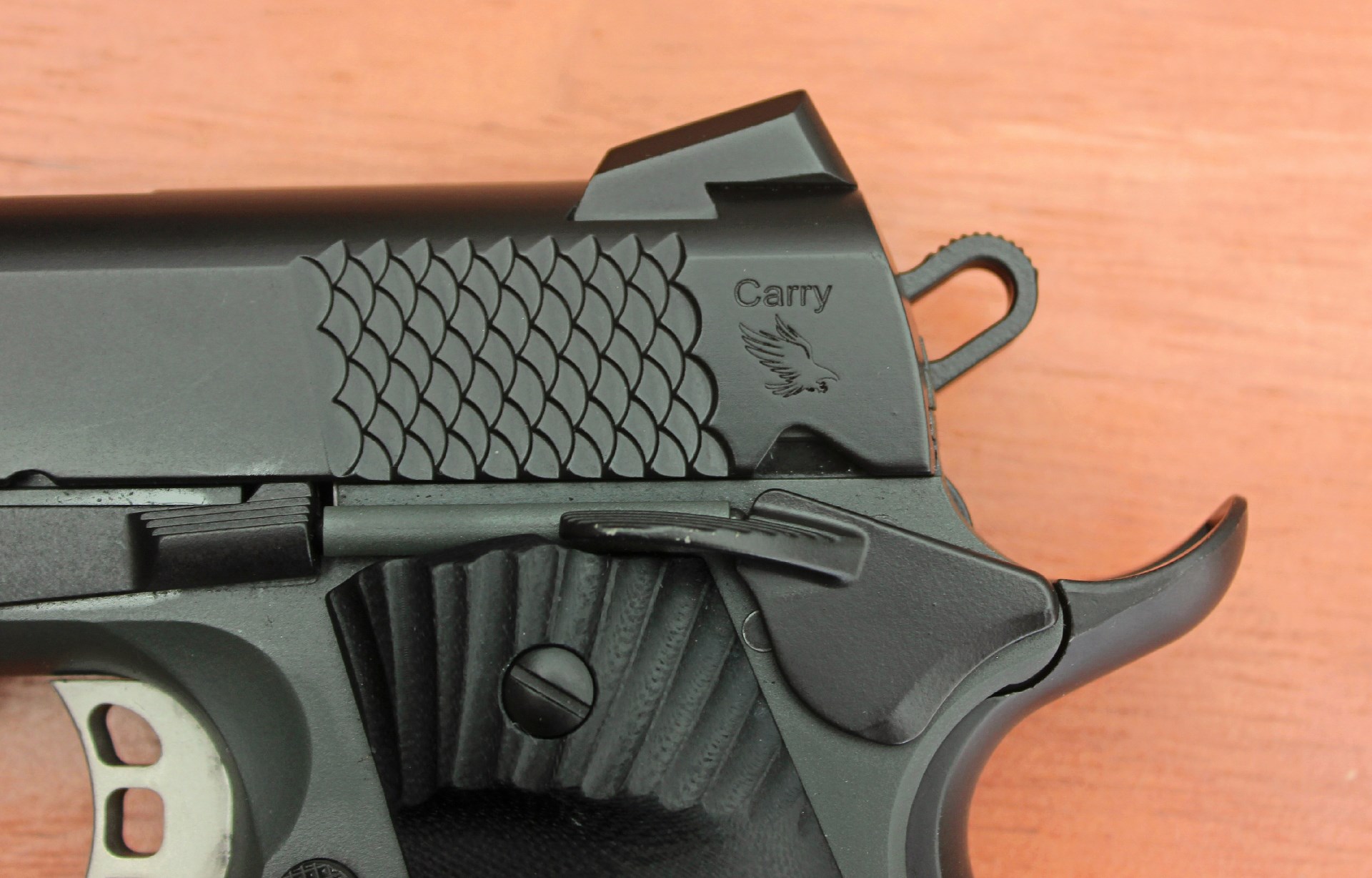 The fish scale cocking serrations are practical and good looking.