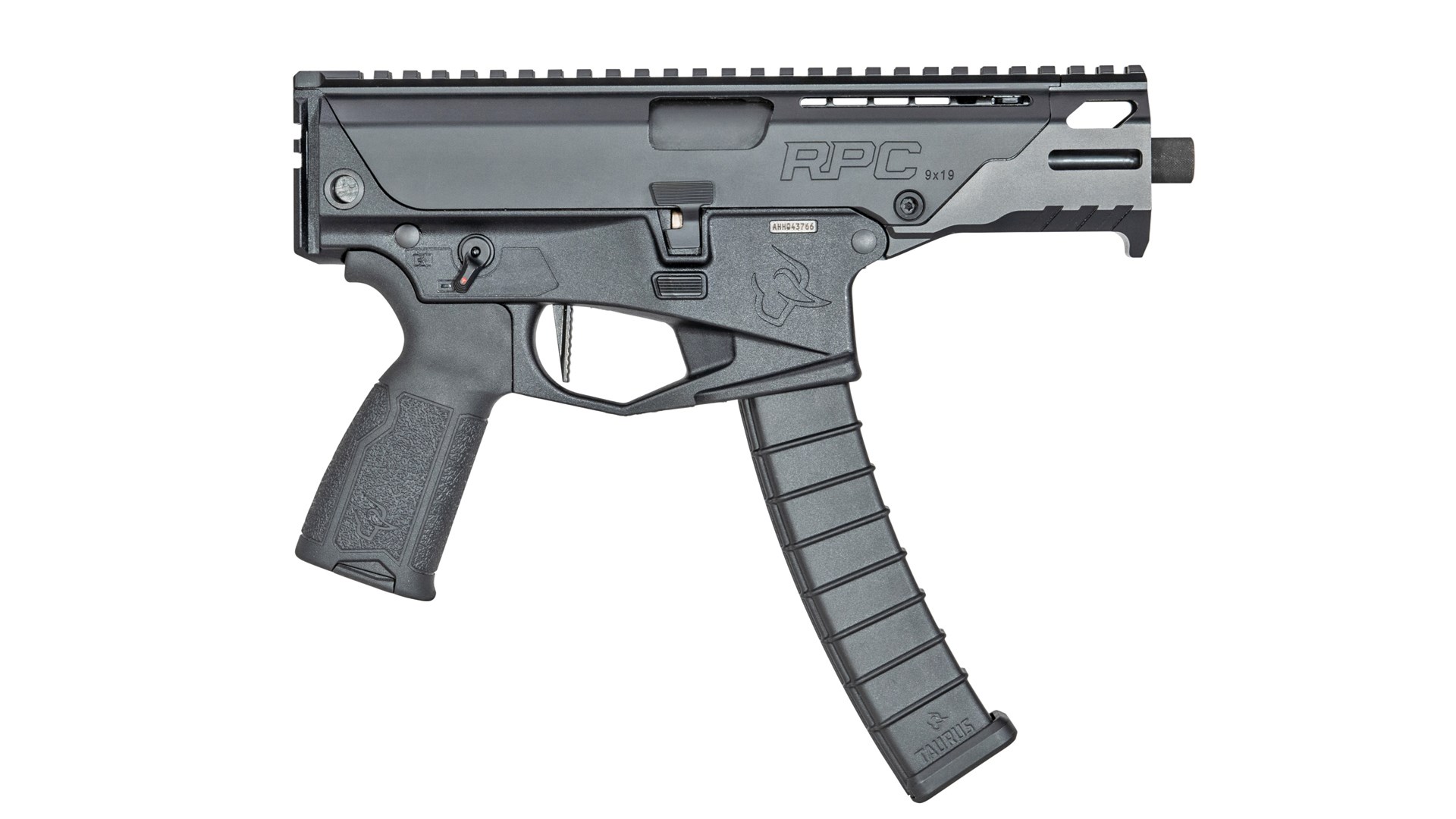 Like many PDWs, the RPC is a stockless and semi-auto-only pistol based on a submachine gun that Taurus designed for law enforcement and tested to NATO standards. Chambered in 9 mm, the RPC uses a roller-delayed blowback action and is fired by a flat-faced single-stage trigger. The 4.5-inch barrel mounts with a quick-change system, and its muzzle is threaded 1/2x28 TPI for attaching suppressors and other accessories.