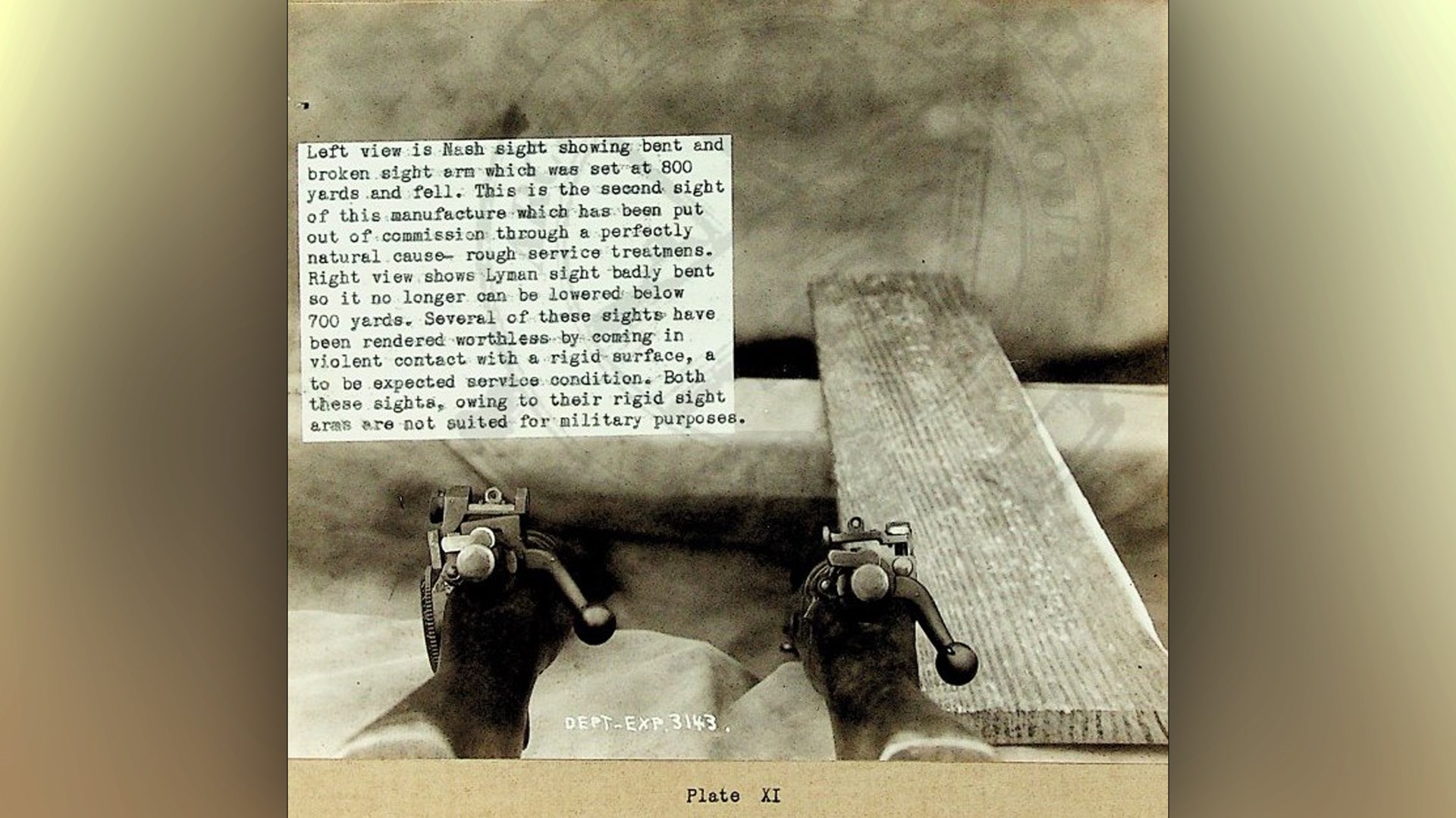 However, the biggest complaint, and the one most likely to doom a contemplated military sight, was that both the Lyman and Nash sights showed a tendency to jam when subjected to dust and grit, and that both also were deemed “prone to injury from a blow when raised above the point-blank position.” Since military forces, then and today, must expect some degree of abuse, a sight that could easily become rendered mechanically inoperative is generally not going to be acceptable for standard use.