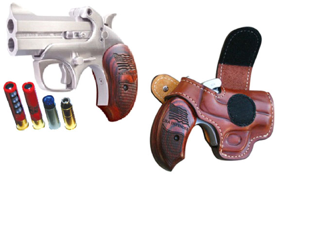 The Polymer Public Defender features a frame incorporating both steel and synthetic components, a practice that has been used successfully in a variety of semi-automatic pistols for quite some time. Both the barrel and the grip frame have been abbreviated for ease of concealment, and the comfortable Ribber grip helps to manage the recoil produced by 2 1/2-inch .410 shotgun shells. The bright red fiber-optic front sight on this version of the Defender is complemented with a low-profile adjustable rear sight.