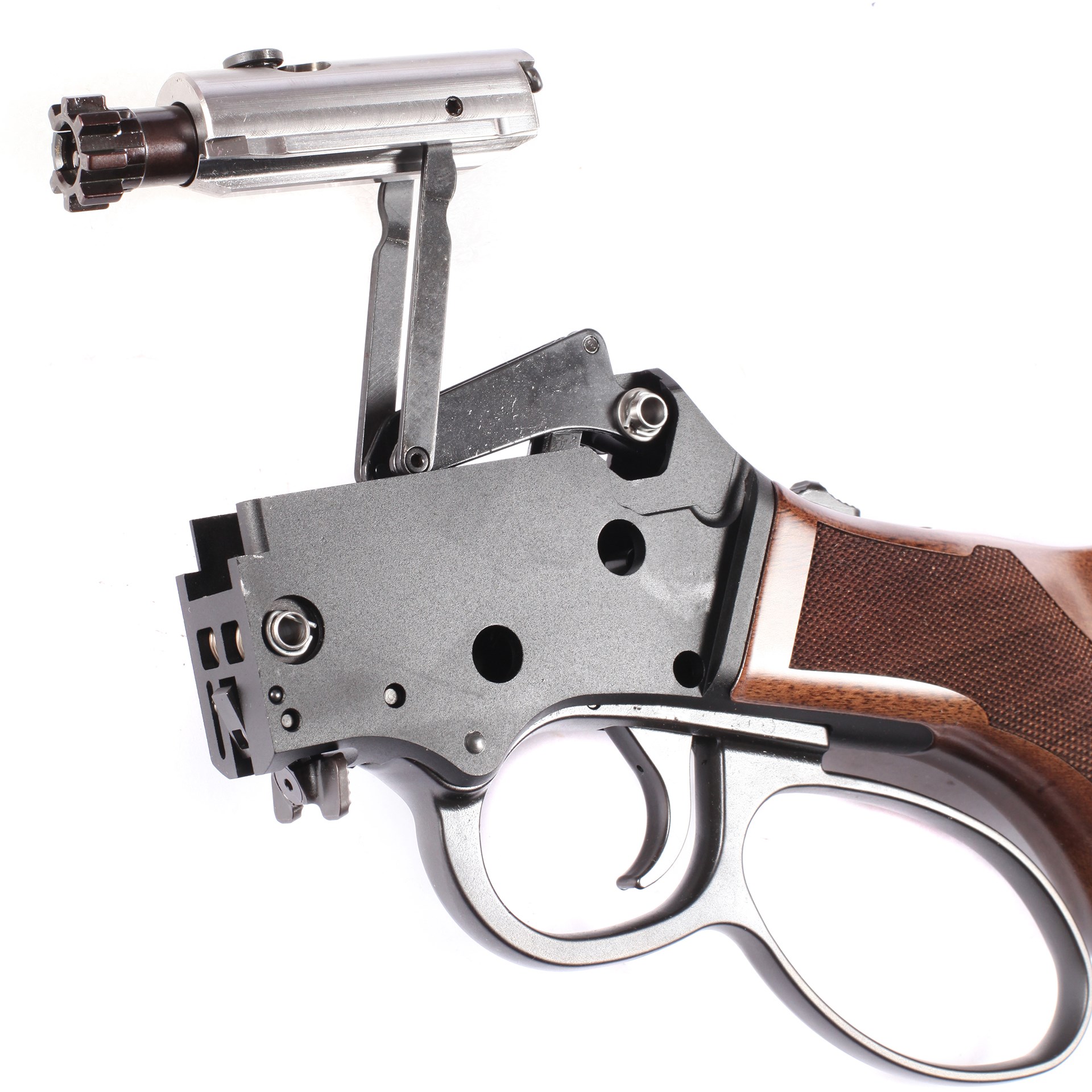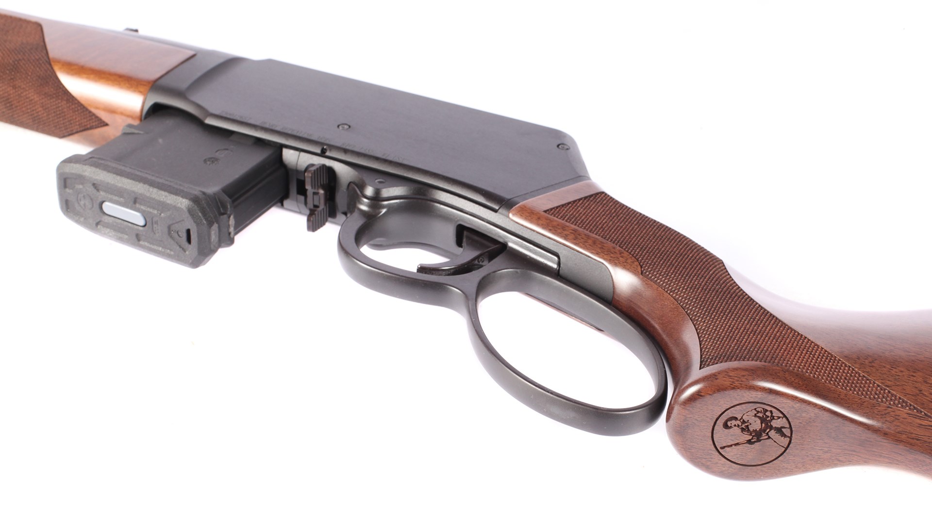 Other drum-type magazines on the market may work—not because you need to but because you can. Magazines are released with a paddle-type latch in front of the lever and drop free of the action. This release, combined with the tang safety, make the LASR’s controls fully ambidextrous.