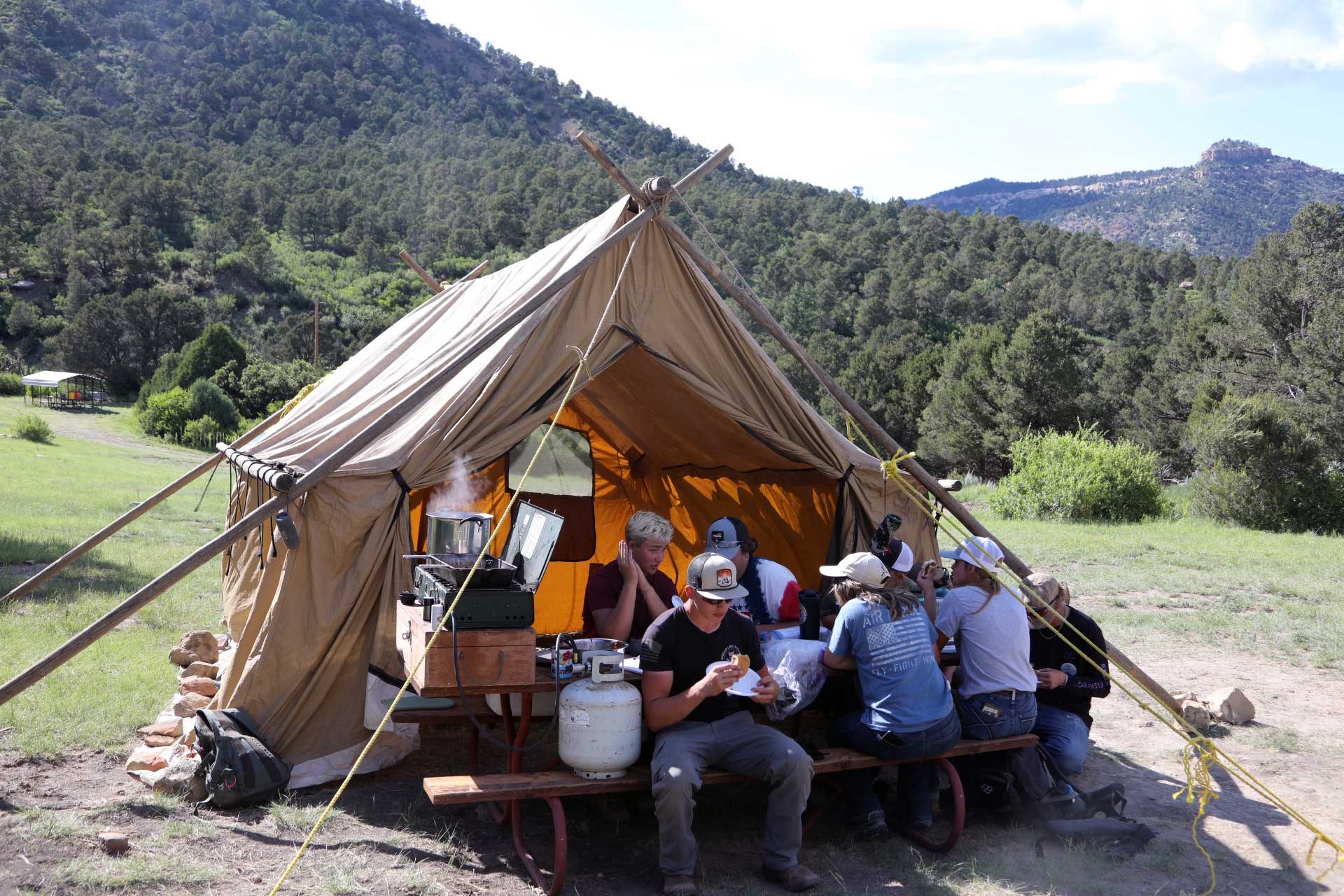 Campers stay in Whittington’s rustic log cabins, each with bunk beds, storage, a separate bathroom with shower, and counselor quarters. Meals are served at the center’s cafeteria. The campus also features the Frank Brownell Museum of the Southwest, the Bud and Willa Eyman Research Library, the Van Houten Ghost Town and Coal Mine ruins and “The Scout” statue and walkway honoring Charlton Heston overlooking the Santa Fe Trail. This is not just a camp; it’s an immersion in American history, Western heritage and outdoor culture.