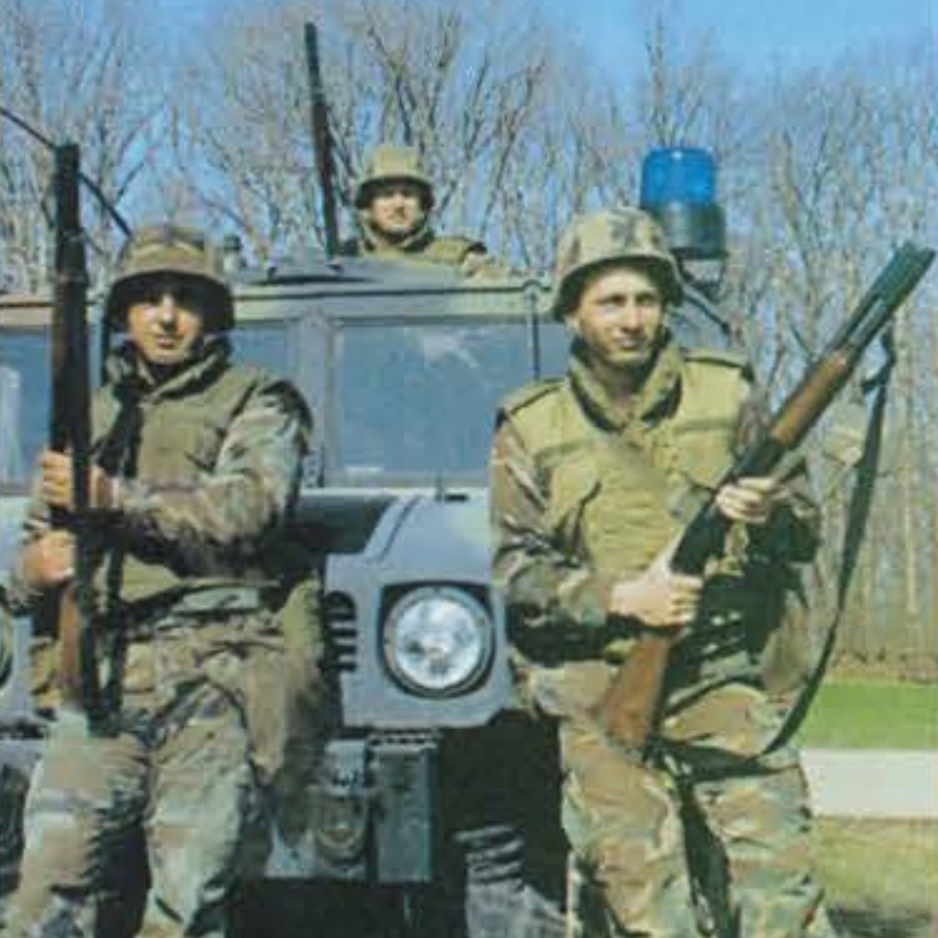 Ohio National Guardsmen armed with Remington 870 Wingmaster shotguns on duty outside of the Southern Ohio Correctional Facility in Lucasville during the 11-day standoff that took place there in April 1993. (Photo by Spec. J.D. Biros, 196th Public Affairs Detachment)