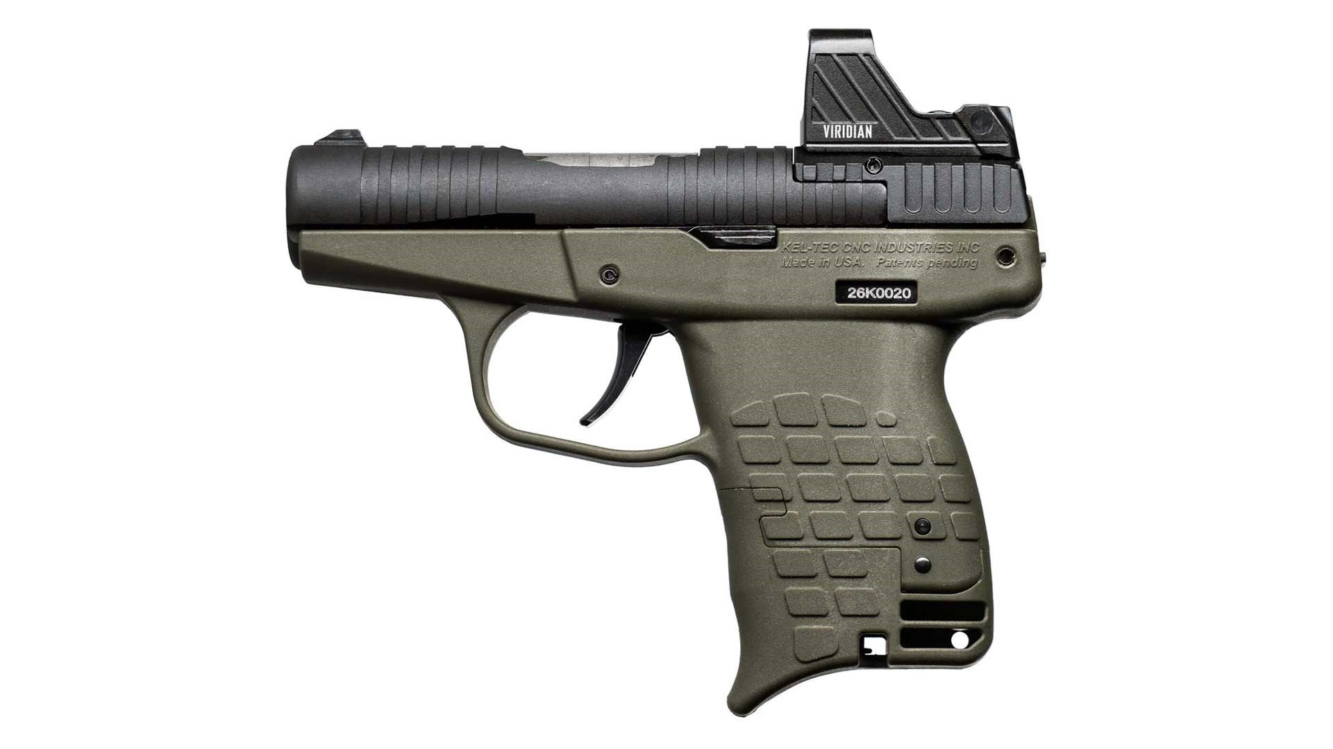 The minimalist approach KelTec took to its PR57 is also evident in the PR-3AT, as the gun features a double-action trigger with no manual safety, and the only additional control is a single-sided slide stop on the left side of the frame. Rounds are loaded through the ejection port at the top. A set of fixed sights completes the design. Models are available in black, green and tan, and there's also a Defender model that includes a mounted Viridian red-dot optic, along with a belt clip, four stripper clips and a Rounded Gear IWB holster.