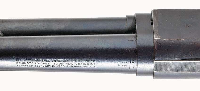 A number of 1918 vintage M1897 trench guns may be encountered today without martial markings. The most logical explanation for such guns is that they were purchased by the government during World War I but the war ended before the guns could be issued, thus they were not stamped with the “US” and “flaming bomb” markings.
