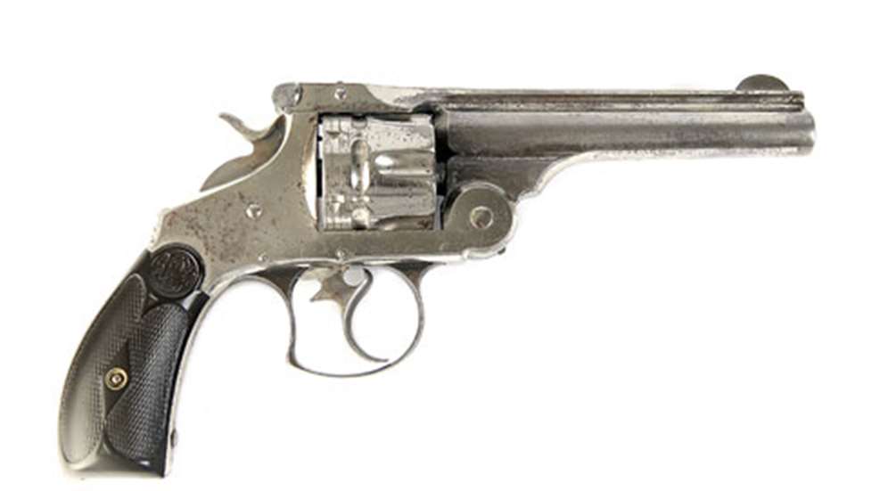 Smith & Wesson’s First Model DA incorporated the company’s familiar curved grip frame, flanked by either hard rubber or checkered walnut stock panels. The revolver was available in blue and nickel-plated finishes, and barrels were 4, 5, 6, 6½ and 8 inches (rare) in length, with 5 inches being the most common.