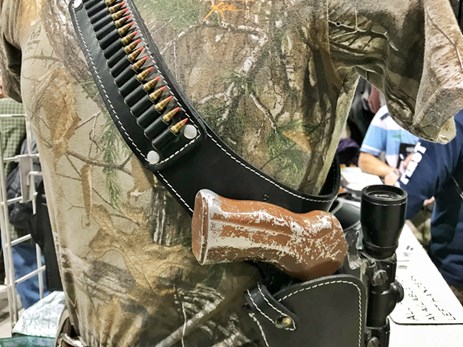 Leather goods are plentiful, like this holster for a scoped T/C Contender pistol.